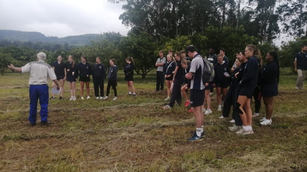 The Grade 12 Geography students, together with the matric class from Grace College, kicked off the year with an exciting Themes Day. They spent time exploring the IEB‑prescribed themes of citrus, gold, and the Eastern Cape. Mr Stan Solomon kindly hosted us on his farm at Shooters Hill in Otto’s Bluff and gave us a talk on the navel and Valencia oranges he grows on his farm. We got to walk through the orchard and the packhouse and think about the climatology of the area and how it relates to farming.
